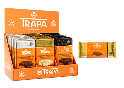 Chocolates cortados y turrones crujientes elaborados con ingredientes de calidad suprema, textura crujiente y sabor equilibrado, combinación de chocolate con leche, chocolate negro y chocolate blanco según variedad, presentaciones surtidas ideales para compartir o regalar, formatos en bolsas de 1 kg y 250 g y expositores con tabletas individuales, alto rendimiento para consumo frecuente o canal profesional, presentación atractiva y práctica para puntos de venta y hostelería, producto respaldado por la experiencia y tradición de la marca TRAPA.